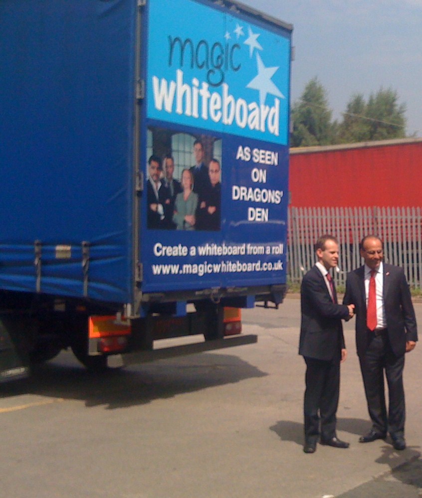 Theo Paphitis from Dragons' Den visited Magic Whiteboard on Wednesday 1st July to film the Magic Whiteboard success story for a Dragons' Den follow up to be shown in October 2009. Theo and Neil Westwood also visited Worcestershire Royal Hospital to see Neil's wife, Laura and their 1 day old son Morley. In the afternoon Theo visited Busy Bees Nursery in Evesham to see children using Magic Whiteboard and Magic Blackboard.